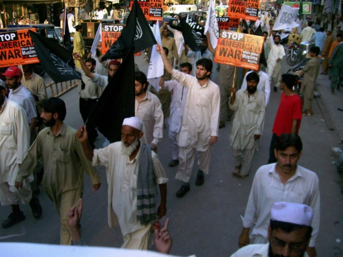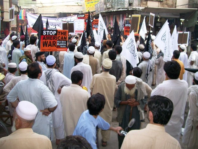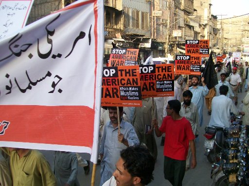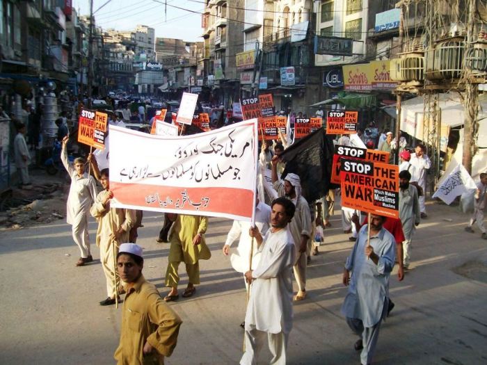 نظم حزب التحرير ولاية باكستان مسيرة ضد الحرب الأمريكية في بيشاور