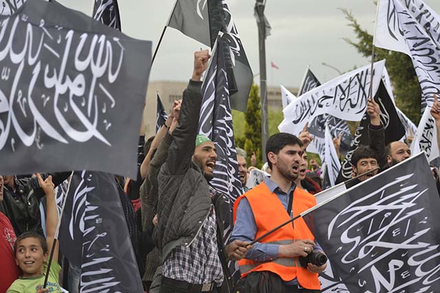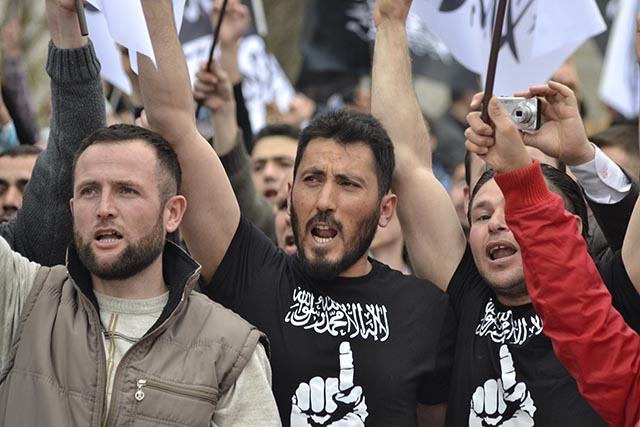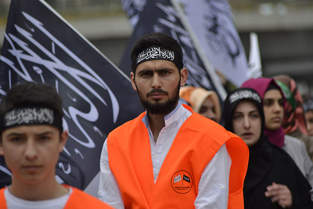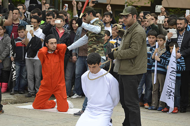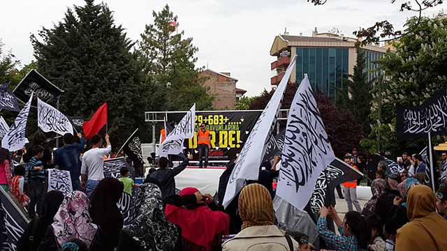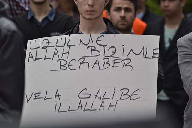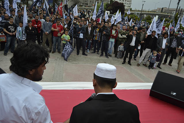 ولاية تركيا: وقفة أنقرة "أوقفوا فرعون مصر وكل فراعنة الأرض" نظم شباب وأنصار حزب التحرير / ولاية تركيا وقفة في أنقرة بعنوان "أوقفوا فرعون مصر وكل فراعنة الأرض" للتنديد بأحكام الإعدام الجائرة التي صدرت بحق المسلمين على يد فرعون مصر وبالأحكام الظالمة التي يو