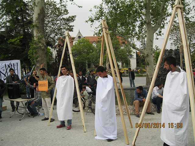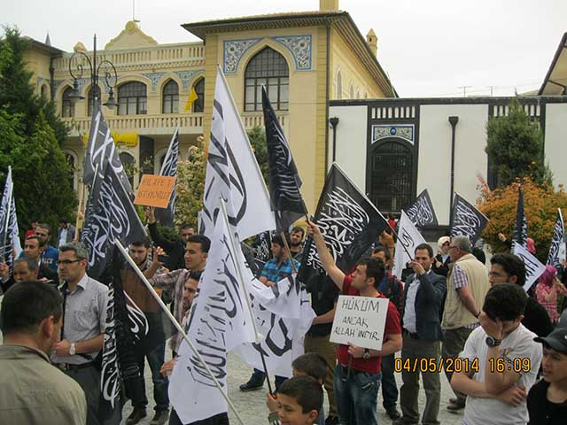 ولاية تركيا: وقفة قونيا "أوقفوا فرعون مصر وكل فراعنة الأرض" نظم شباب وأنصار حزب التحرير / ولاية تركيا وقفة في مدينة قونيا بعنوان "أوقفوا فرعون مصر وكل فراعنة الأرض" للتنديد بأحكام الإعدام الجائرة التي صدرت بحق المسلمين على يد فرعون مصر وبالأحكام الظالمة