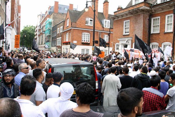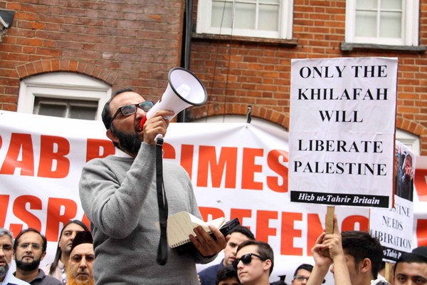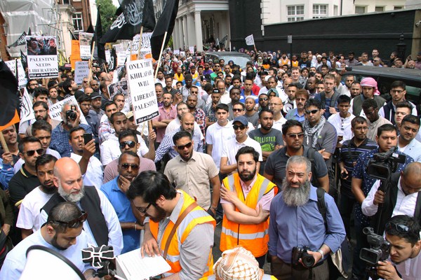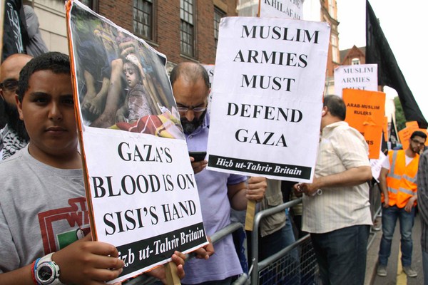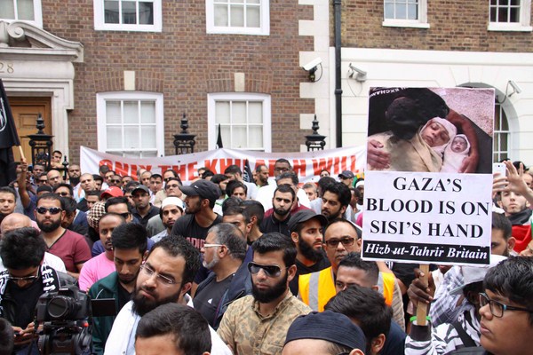 بريطانيا: مظاهرة طالبت جيوش المسلمين التحرك لتحرير فلسطين نظم حزب التحرير / بريطانيا مظاهرة أمام السفارة المصرية طالبت جيوش المسلمين التحرك لتحرير فلسطين وإيقاف مجازر كيان يهود في قطاع غزة، وأكد الآلاف الذين شاركوا في المظاهرة بأن إقامة الخلافة الراشدة