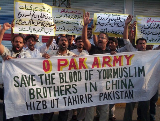 نظم حزب التحرير مسيرة في باكستان احتجاجا على مجزرة تركستان الشرقية وطالبوا فيها جيوش المسلمين بالدفاع عن حرمات المسلمين ودمائهم.