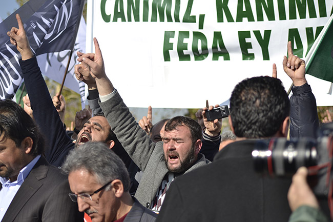 ولاية تركيا: وقفة أنقرة نصرة للمسجد الأقصى نظم حزب التحرير / ولاية تركيا وأنصاره وقفة في أنقرة نصرة للمسجد الأقصى المبارك الذي يتعرض لاعتداء غاشم من قبل كيان يهود الغاصب للأرض المباركة. الجمعة، 14 محرم 1436هـ الموافق 07 تشرين الثاني/نوفمبر 2014م