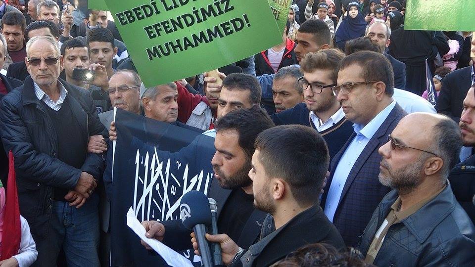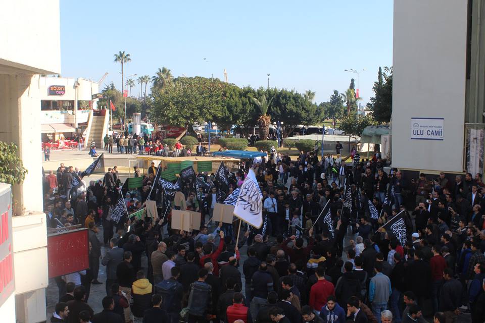 ولاية تركيا: وقفة مرسين نصرة لرسول الله عليه الصلاة والسلام نظم حزب التحرير / ولاية تركيا وأنصاره وقفة في مدينة مرسين نصرة لرسول الله صلى الله عليه وسلم تحت عنوان "رسولنا شرفنا". الجمعة، 03 ربيع الثاني 1436هـ الموافق 23 كانون الثاني/يناير 2015م