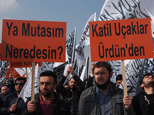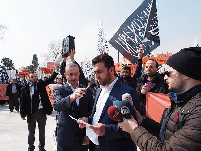"أيها المسلمون! نحن هنا بصفتنا أمة النبي الكريم صـلى الله عليه وسلم الذي وصَفنا كأعضاء الجسد الواحد! إننا هنا من أجل تذكير الظالمين بعذاب الله الشديد، ولفضح خيانة العملاء الخونة! إننا هنا من أجل دعم وإسناد إخوتنا وأخواتنا في سوريا، ولكي نعلن بأعلى صوتنا أنهم ليسوا وحدهم!"