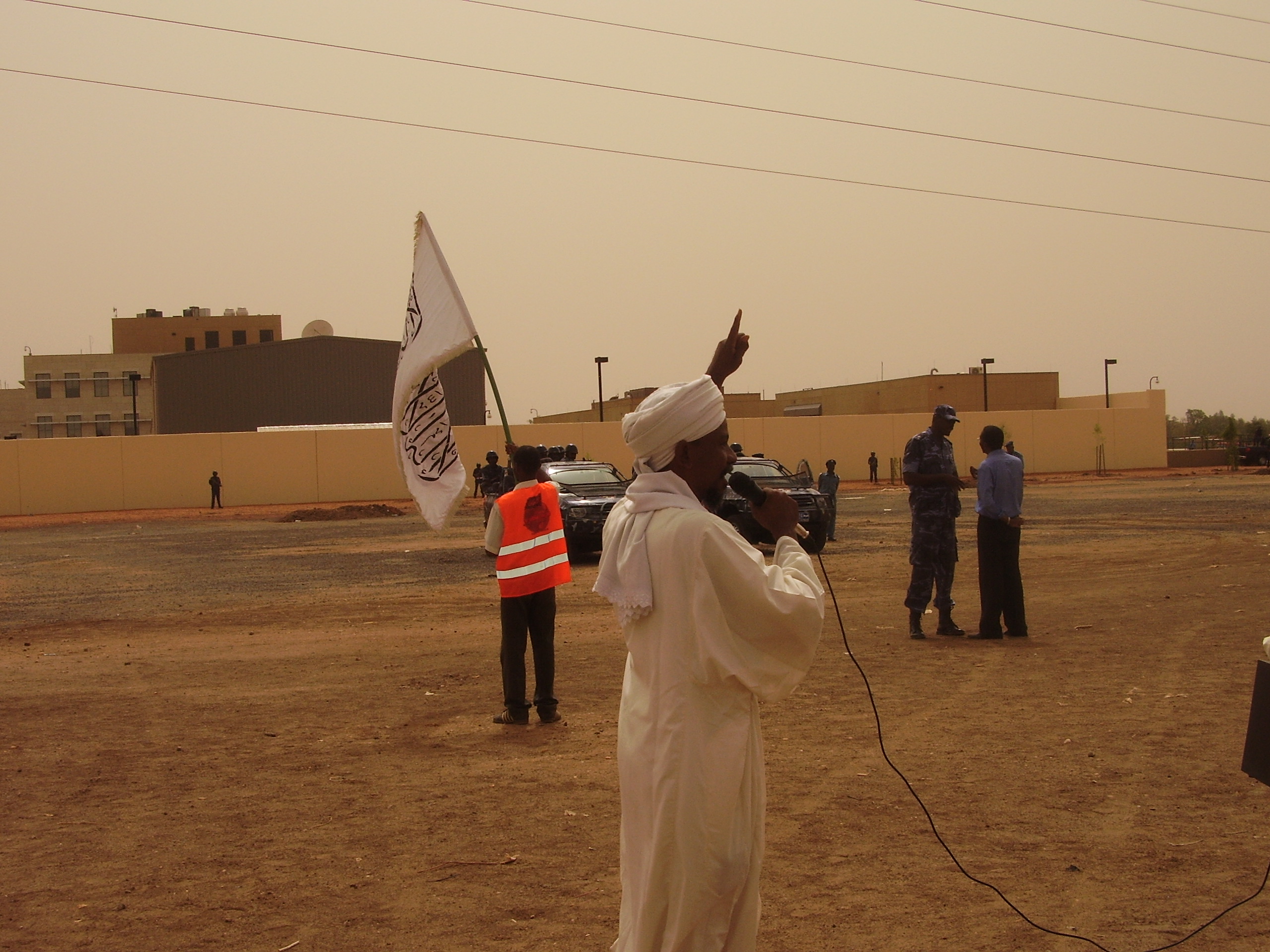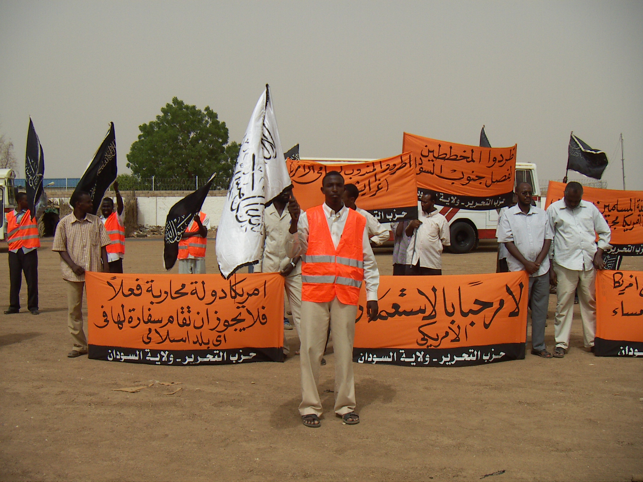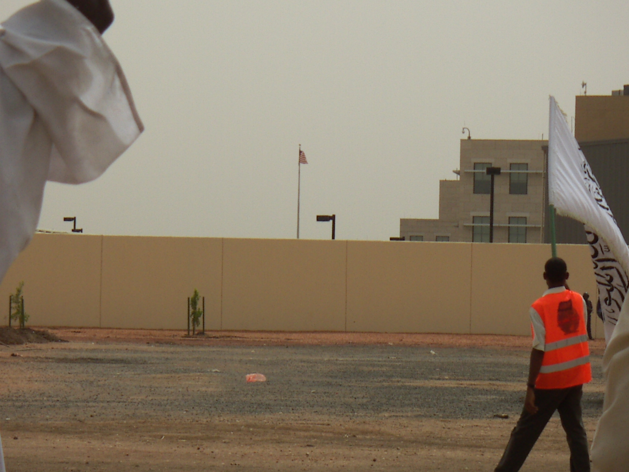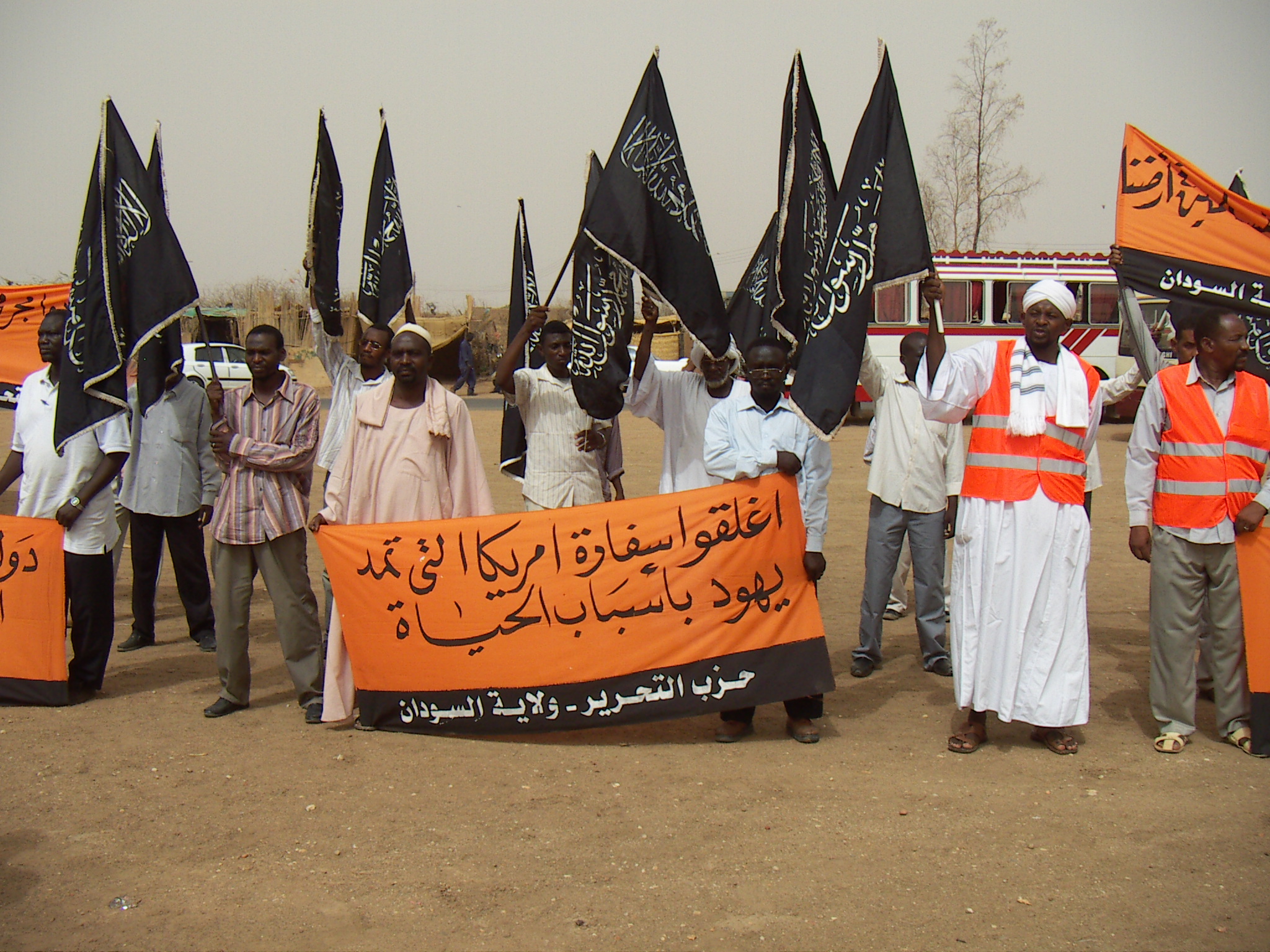 تظاهرة لشباب حزب التحرير أمام السفارة الأمريكية بسوبا، في يوم افتتاحها بتاريخ 24/6/2010م رفضا من الحزب لاقامة سفارة لدولة الارهاب الأولى(أمريكا) في السودان وطلبا مباشراً من الحكومة الخائنة ان تقطع كل علاقة ديبلوماسية مع مجرمي العصر أمريكا التي تقطر ايديها دما اسلاميا زكيا في العارق وافغانستان.