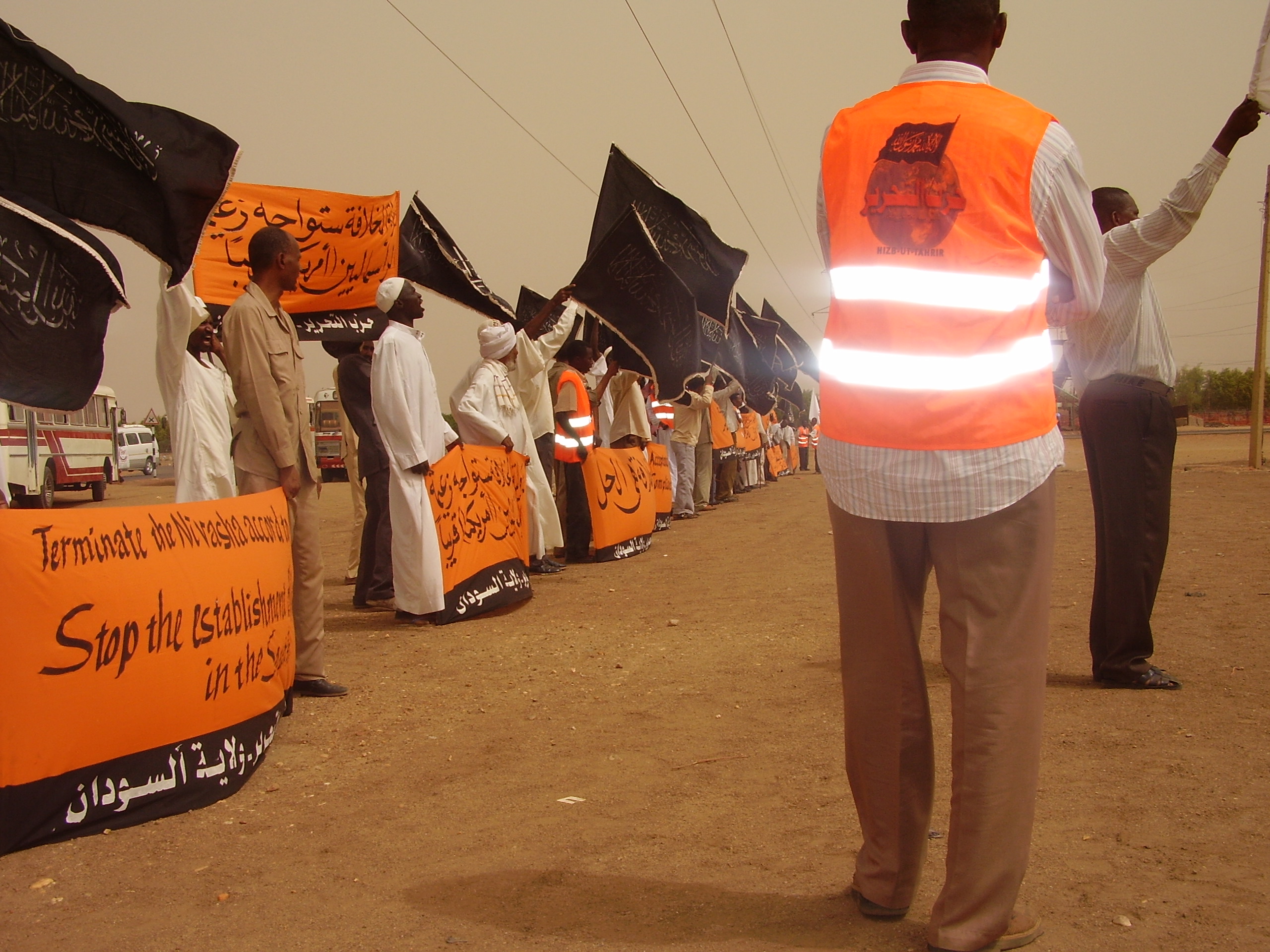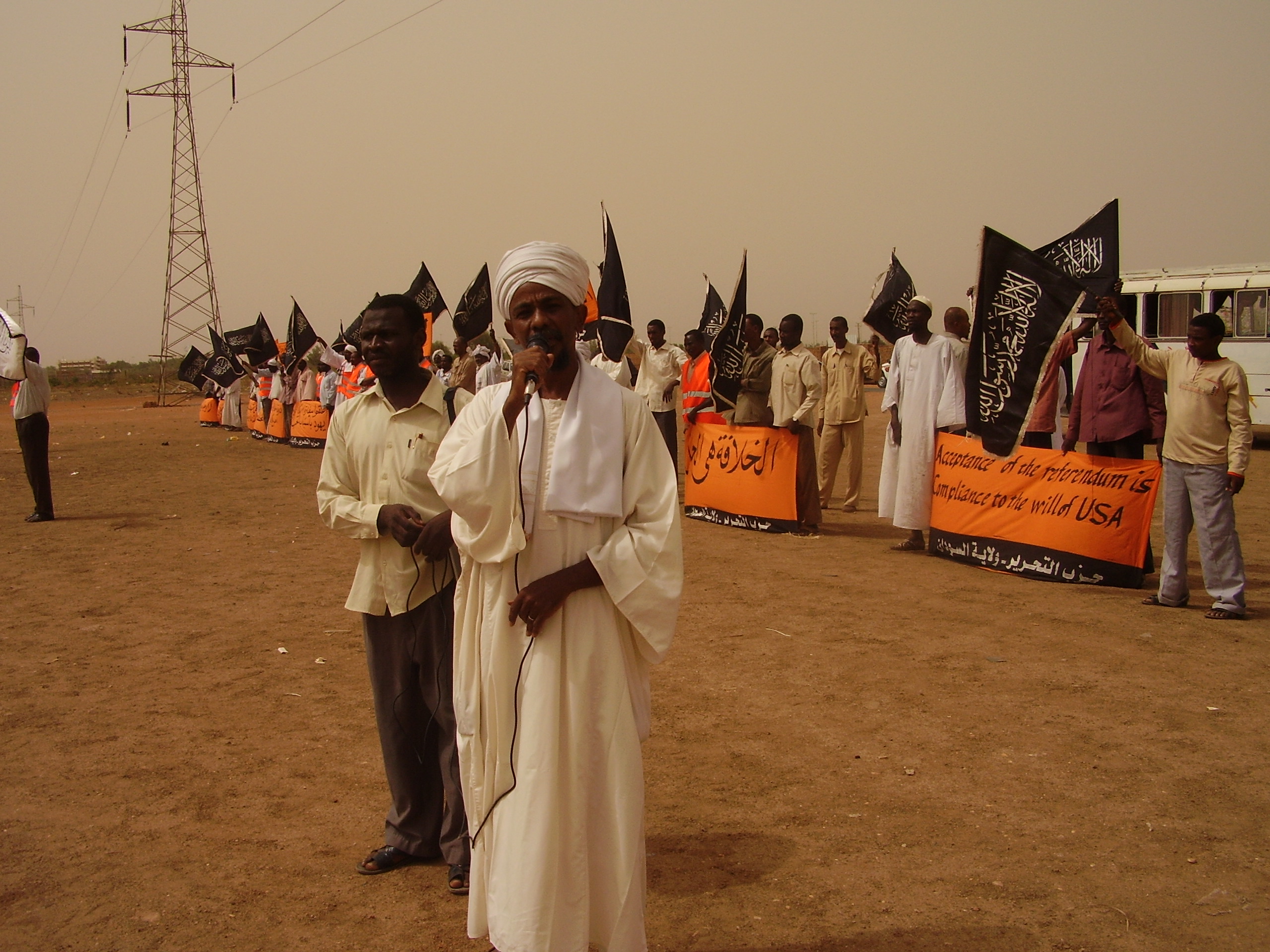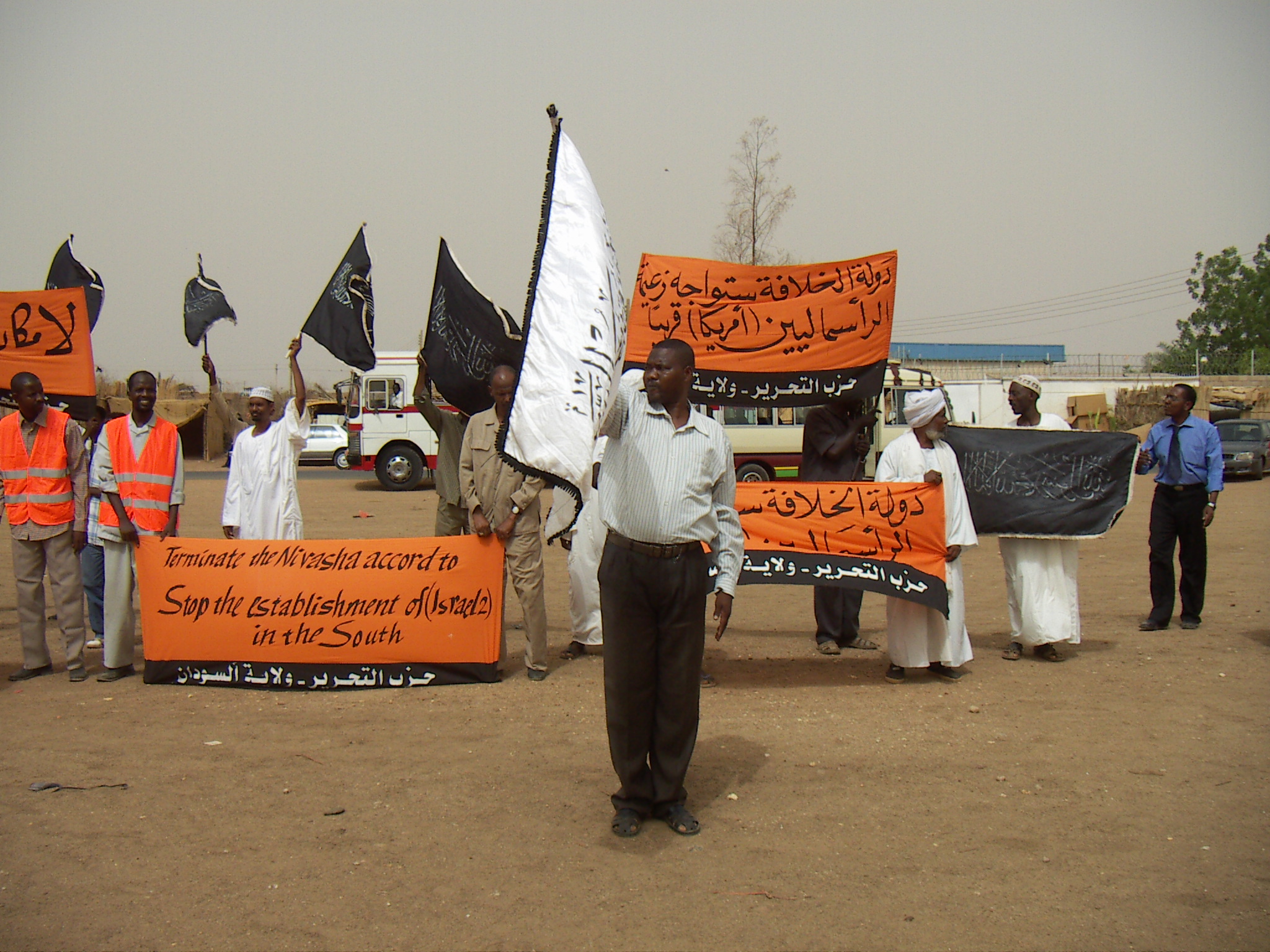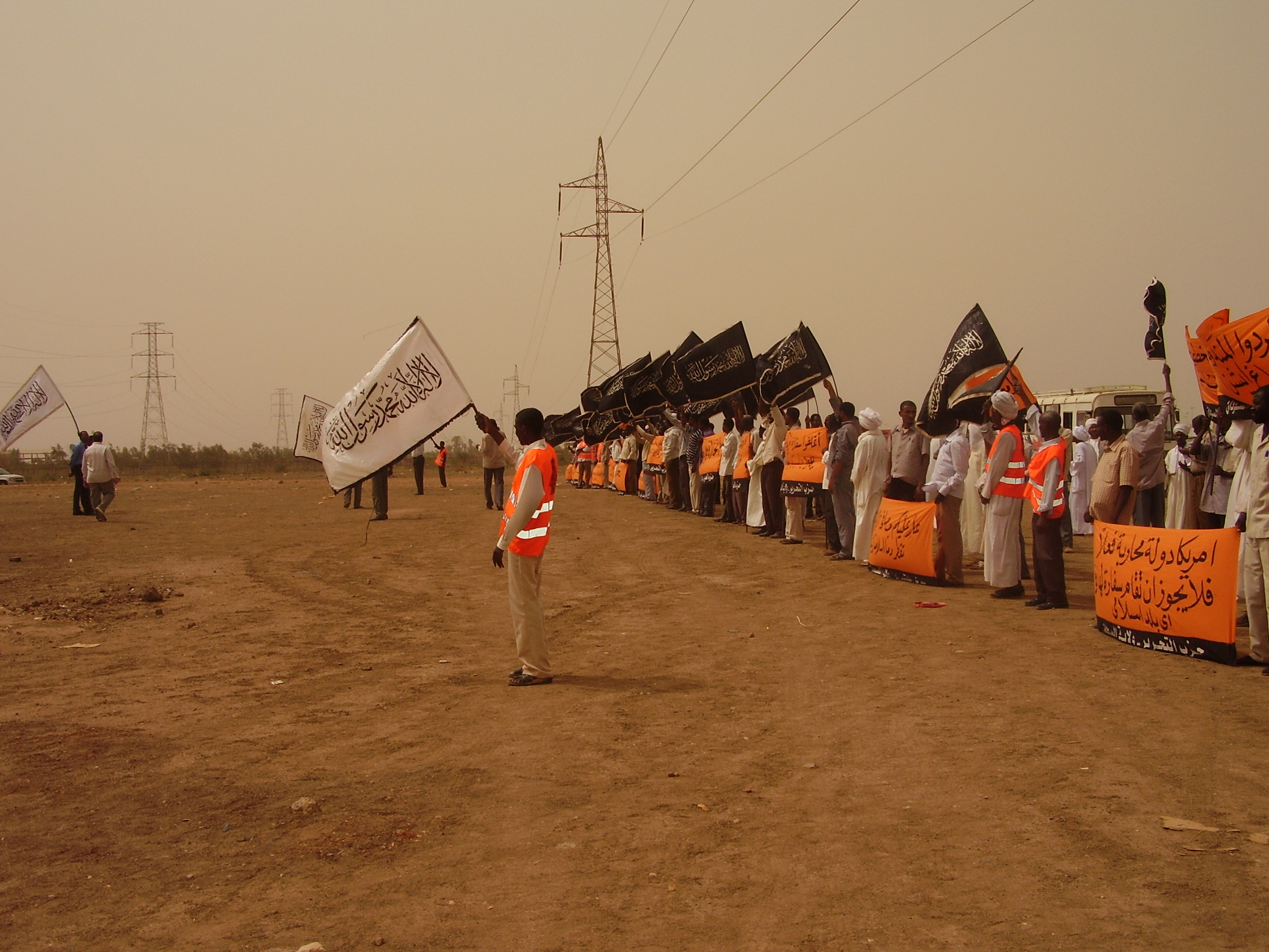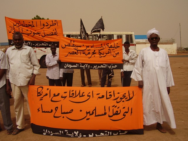 تظاهرة لشباب حزب التحرير أمام السفارة الأمريكية بسوبا، في يوم افتتاحها بتاريخ 24/6/2010م رفضا من الحزب لاقامة سفارة لدولة الارهاب الأولى(أمريكا) في السودان وطلبا مباشراً من الحكومة الخائنة ان تقطع كل علاقة ديبلوماسية مع مجرمي العصر أمريكا التي تقطر ايديها دما اسلاميا زكيا في العارق وافغانستان.