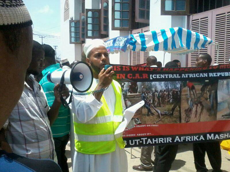 Hizb ut Tahrir / East Africa held a stand after Friday prayers in Mombasa to condemn the brutal massacres committed against defenseless Muslims in the Central African Republic.