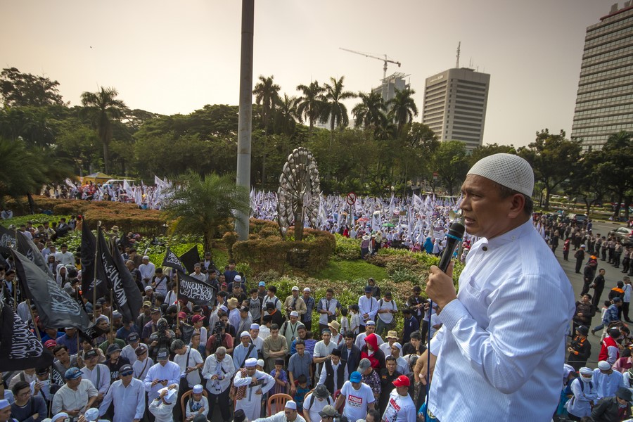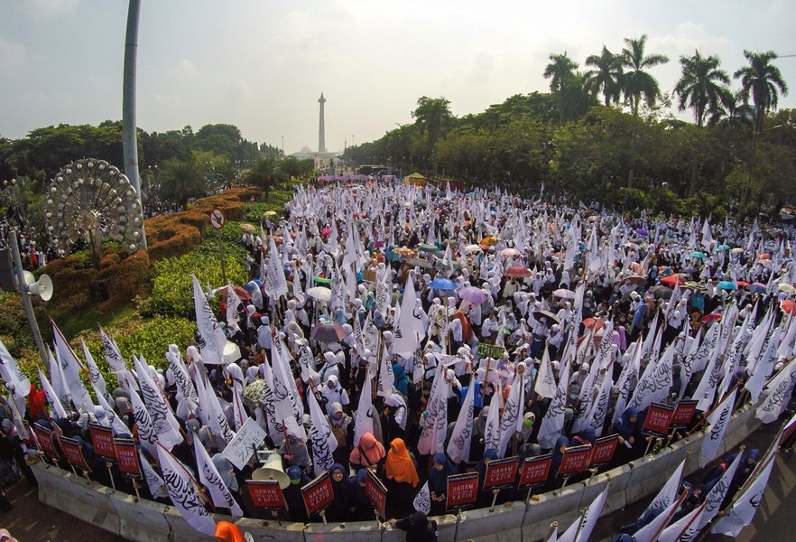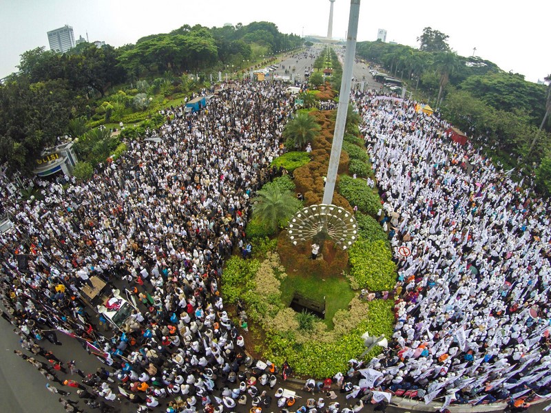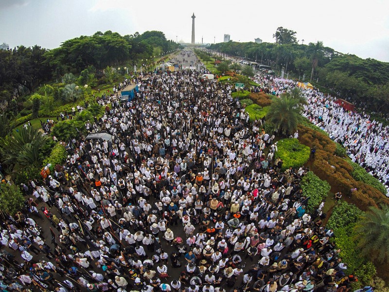 About 20,000+ Muslims including 10,000 women held a large rally for peace action on 4th September 2016 in front of the Jakarta National Monument.