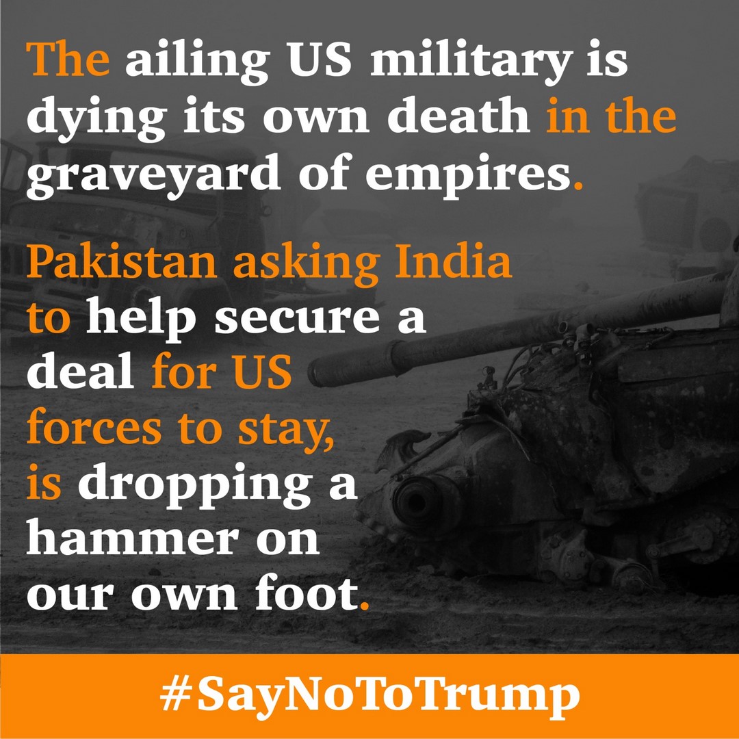 Hizb ut Tahrir in Wilayah Pakistan launched a social media campaign to expose conspiracy of Bajwa-Imran Regime acting as hired facilitators through US and private military where it can remain in Afghanistan on the doorstep of the only Muslim nuclear power. #SayNoToTrump