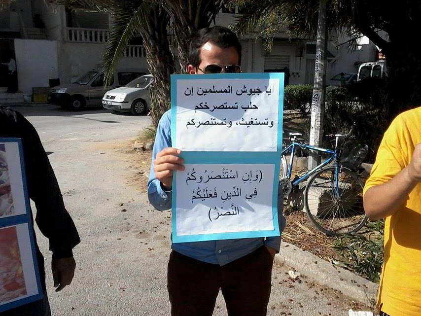 Hizb ut Tahrir in Wilayah Tunisia organized numerous stands throughout various regions of the country on Friday and Saturday 14 - 15 October 2016 for the victory for the people of Aleppo which raised slogans and delivered speeches rejecting the massacres carried out by the regime of Bashar and the Russian army supported by America. The stands reminded the people of the role of the Muslim armies in lifting the harm to the Ummah. Interactive tours were also held and they distributed the leaflet issued by Hizb ut Tahrir on the 4th of Muharram 1438 AH, corresponding to 10/05/2016 CE, titled “In the Ongoing Massacres and Destroyed Hospitals ... Aleppo Raises Its Hands Praying to Allah that the Muslim Armies Move to its Rescue… And that Allah Curses the Agent Traitor Rulers”.