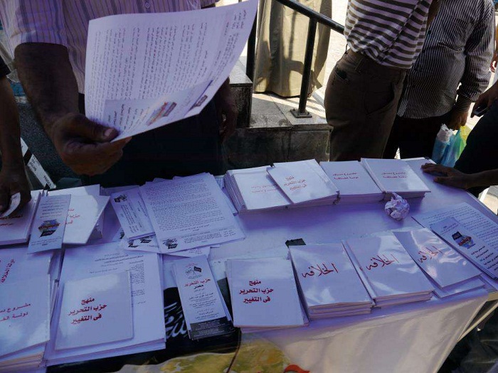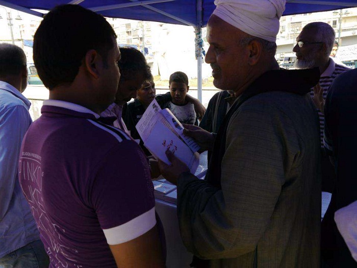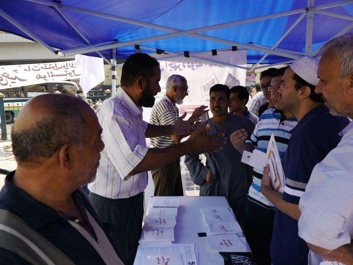 Continuing with the Hizb-ut Tahrir/ Wilayah Egypt campaign to explain the draft constitution of the Khilafah "Caliphate" State titled, "Egypt's Constitution Must Be an Islamic Constitution." On Friday, 03 Dhul Hijjah, 19 October 2012, Hizb Activists set up a mobile information tent was set up in front of Al-Istqameh Masjid in Giza. Alhamdulillah, large numbers poured into the tent sparking positive discussions with inquiring questions.