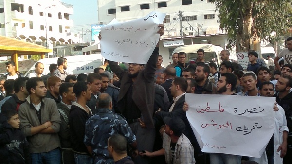 A gathering of a number of Egyptian forces and people coming in solidarity with the Gaza Strip, which killed their people day and night and not least the murder of two families, ad-Dilo and Azzam. This gathering took place Monday, 05 Muharram 1434 H, November 19, 2012. A group of Shabab Hizb ut Tahrir gathered at ash-Shifa Hospital in Gaza carrying posters "GAZA Seeks Armies NOT Delegations of Condolences" "Palestine Victory is in the Mobilization of Armies" Included in this delegation are the speaker of the Egyptian revolution, President of the Head of the Justice and Development Party Egyptian, Sa'ad al-Katatni, in addition to Nabeel Sha'th as the representative of Abbas's Authority.
