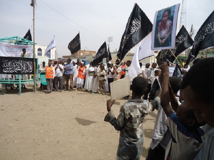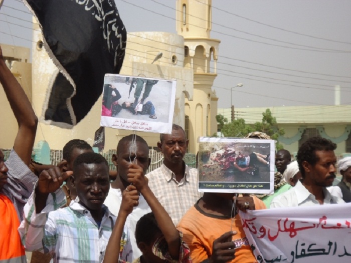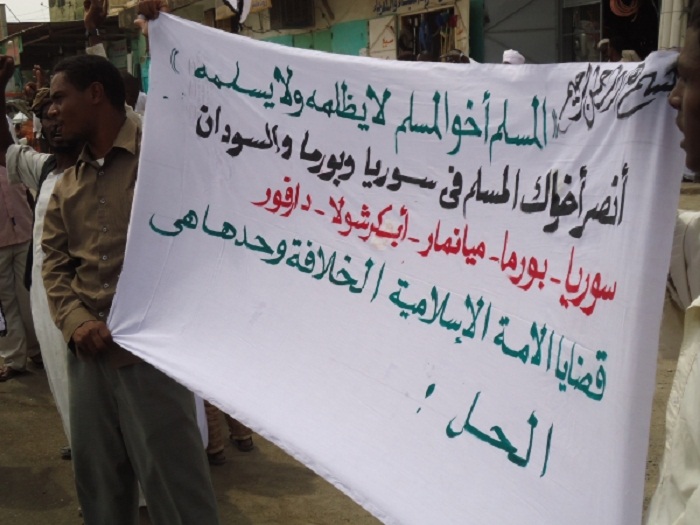 Hizb ut Tahrir/ Wilayah Sudan on Monday, 10 Rajab 1434 AH, corresponding to 05/20/2013, in a stand of solidarity to support the people of Syria and the Muslims in Burma, Ibkrashwla and Darfur. Under the title: "The Muslim is the brother Muslim- does not oppress him or betray him,"