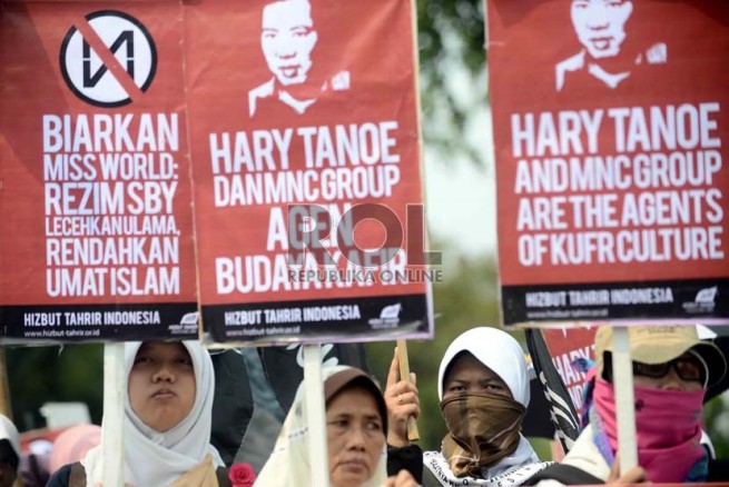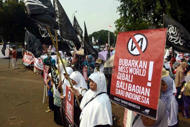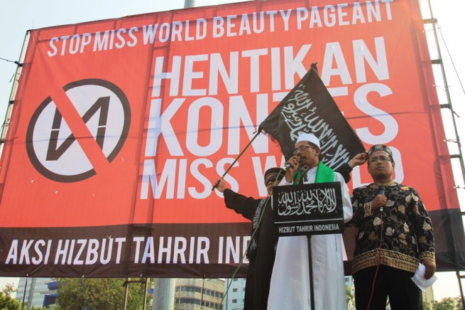 Hizb ut Tahrir/ Indonesia organized protests in several cities in Indonesia; in addition to holding interviews with high ranking people in the police and in the media to prevent the Miss World 2013 competition that is held in Indonesia between August 24 and September 2013.