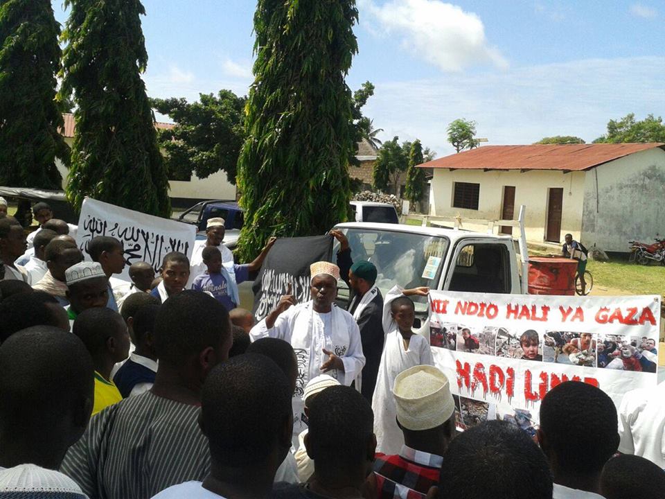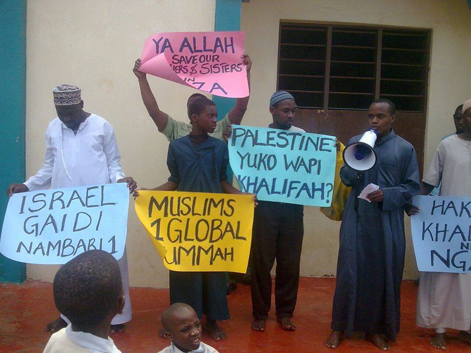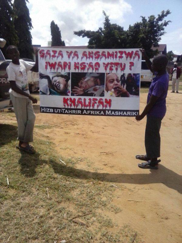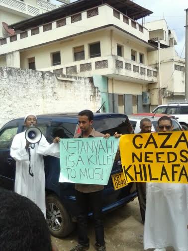 On Friday 18th July 2014, Hizb ut Tahrir East Africa conducted regional picketing soon after Jum'ah prayers on various major mosques all over East Africa. The sole objective of picketing being stern condemnation of the ongoing ruthless multitudinous lynching and massacre against innocent Muslims being carried out by the Jews, who are the most detested creatures before Allah Ta'ala.