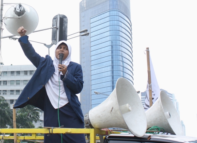 HTI-Press. Jakarta. Around 500 female students of junior, senior high schools, and women activits of Hizbut Tahrir Indonesia joined in Youth Care Action on Wednedsay morning (December 1st) in Hotel Indonesia roundabout, Central Jakarta. They criticized various ways in preventing the endless problems of HIV/AIDS because the solution does not touch the root of the problems.