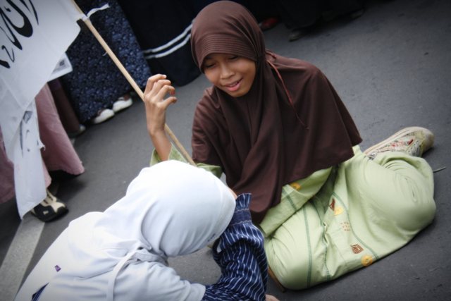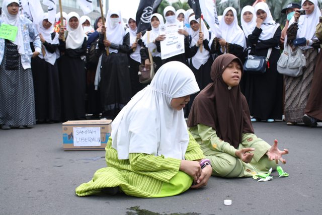The protesters urge all parties to stop the HIV / AIDS with condom distribution and share syringes because it is obviously deceptive. The program referred to as the Information Communication and Education program on HIV / AIDS does not prohibit adultery and drug consumption which are clearly forbidden by Allah SWT. "With the program, the adulterers even feel safe as if they could avoid themselves from AIDS," said Iffah.