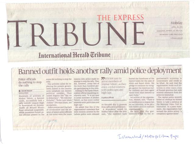 Media coverage of Hizb ut-Tahrir rallies at 04/17/2011