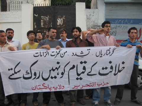 On 21 April 2011, Hizb ut Tahrir Wilayah held protests persecution by the tyrant rulers of the arrested shebaab of Hizb ut Tahrir. Frustrated by the great success of the 17 April 2011 through the grace of Allah SWT, the traitor rulers have lost all sense. They have accused the shebaab in Peshawar of planting explosives outside the house of a member of Jamaat-e-Islami. Shebaab in Karachi and Lahore have been severely beaten and the traitor rulers have stooped to the extent of coming to the house of an arrested Professor of Economics and threatened to take his wife and children. The protestors defiantly held banners saying, "Torture and lowly accusations will never stop the re-establishment of the Khilafah "Caliphate"."