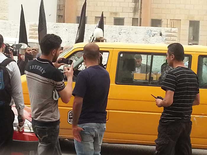 Hizb ut Tahrir in Palestine with the participation of the detainees' families protested Monday 20 Jumada I 1434, corresponding to 1 April 2013, before the Court in Tulkarem to protest the continued detention of six Hizb ut Tahrir members, including engineer Baher Saleh, a member of the Information Office of Hizb ut-Tahrir in Palestine, after their participation in the rally organized by the party in Tulkarem on 24/03/2013, in protest against the abuse of the judiciary and bending of the security services.