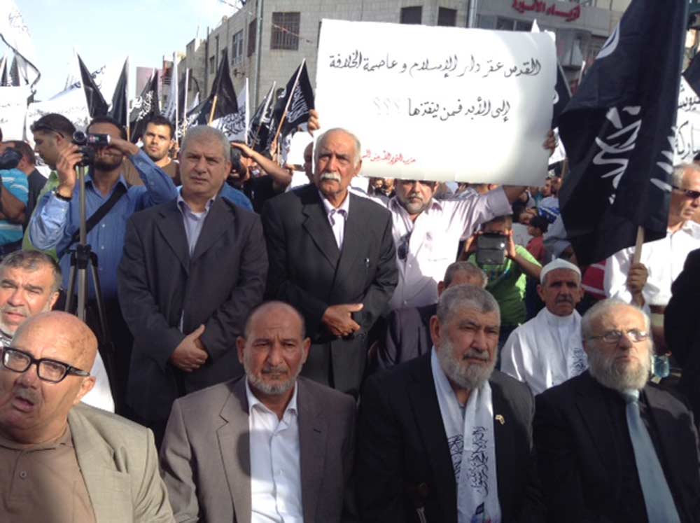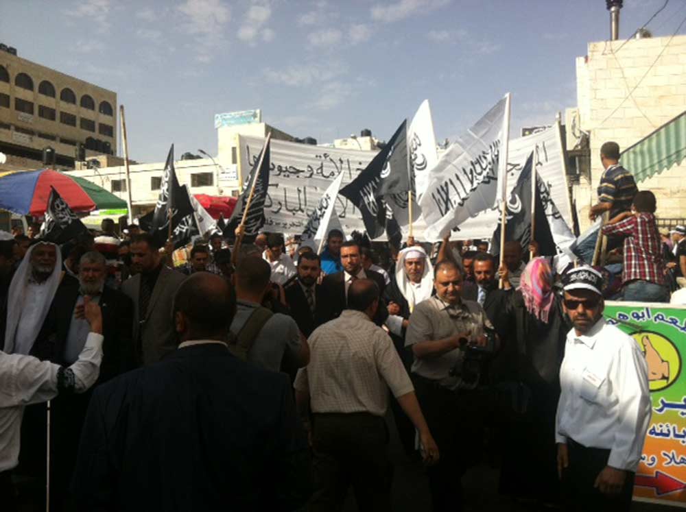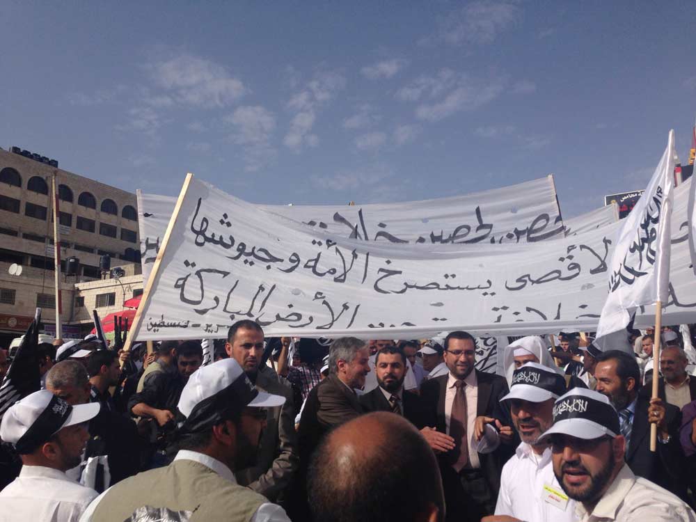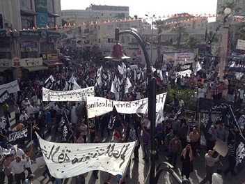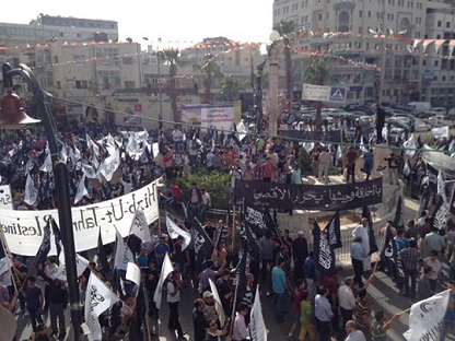 In the city of Ramallah on May 31, 2014 CE after Asr prayer a March took place under the slogan, "Al Aqsa Mosque Cries out for the Ummah and its Armies to Establish the Khilafah "Caliphate" and Liberate the Blessed Land." Thousands raised the banner of the Messenger (saw) and the white Liwaa, and placards calling for jihad and for the establishment of the Khilafah "Caliphate" to liberate Palestine, the Aqsa Mosque and the prisoners. Takbeer and chants soared throughout the streets of Ramallah calling upon the armies to mobilize to liberate the prisoners and the Aqsa in the Blessed Land of Palestine.