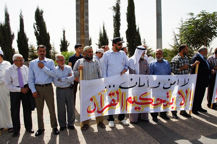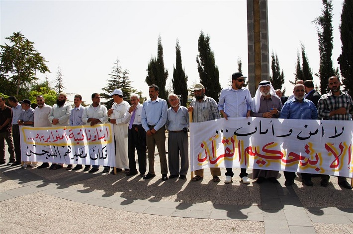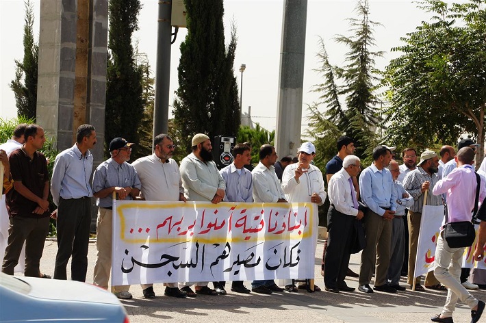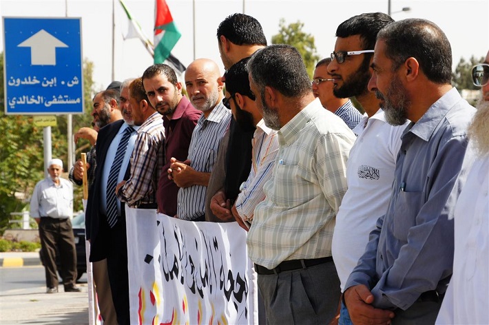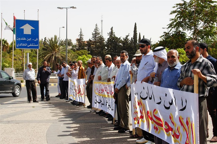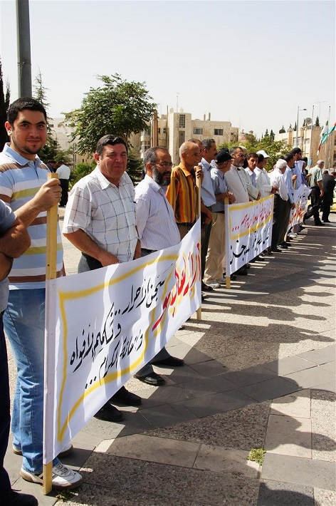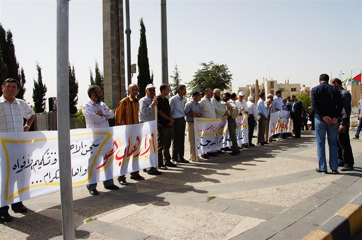 Hizb ut Tahrir/ Wilayah Jordan organized a stand before the prime minister's headquarters to demand the release of the Hizb detainees. Family and friends of the detainees attended the stand. All Praise is to Allah.