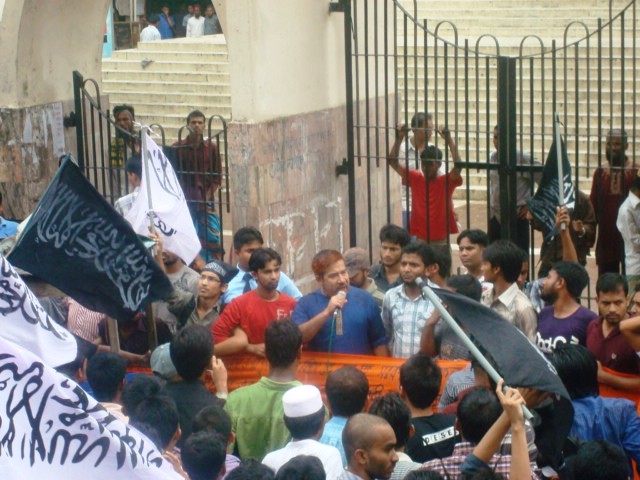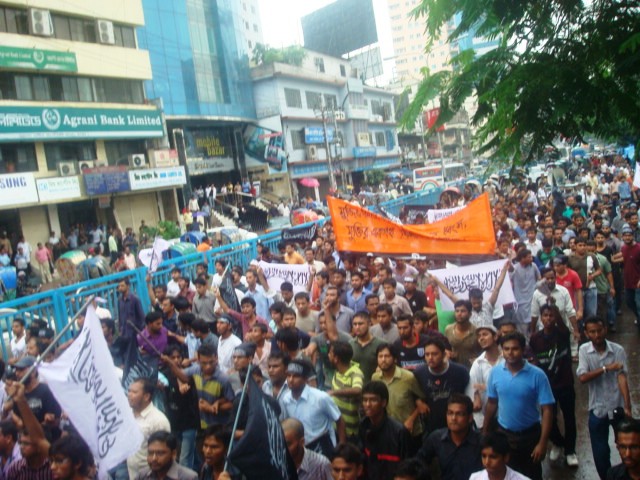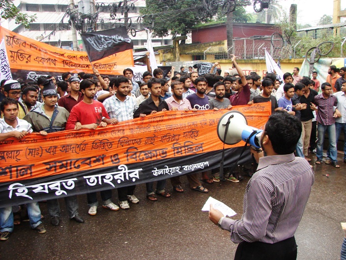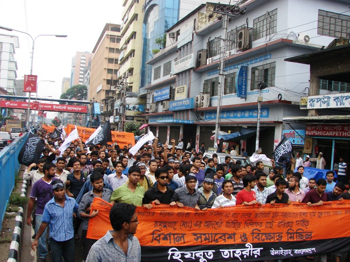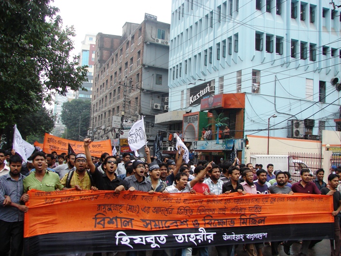 Hizb ut-Tahrir organized a demonstration today calling for removal of the Hasina government, abolition of the democratic system and re-establishing the Khilafah