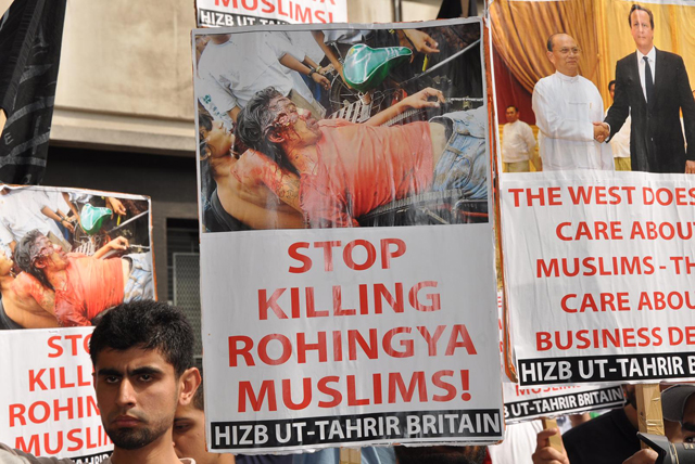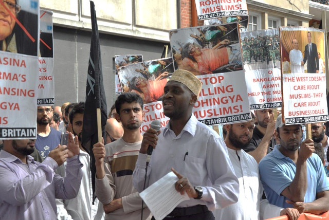 Speakers called on Muslims in Britain to stand shoulder to shoulder with the Muslims in Burma and to continue putting pressure on the Muslim rulers to open borders to Rohingyas and cut relations with Burma. We urge all Muslims who watch these atrocities to intensify the work for establishing the Khilafah "Caliphate" that will liberate the Ummah from this mighty oppression. The demonstration ended peacefully with dua that Allah (swt) bring His Help and Victory soon.