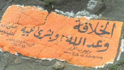 Large banners were hung in main areas in the major cities for people to see. Also by organized and eye catching writings on the walls of the main roads. Members of the Hizb hung many banners in all the cities mentioned above. They included words that encourage Muslims to work for the Khilafah "Caliphate" and explain to them its importance and its uniqueness compared to other man-made systems. Here are some of the statements on the banners: