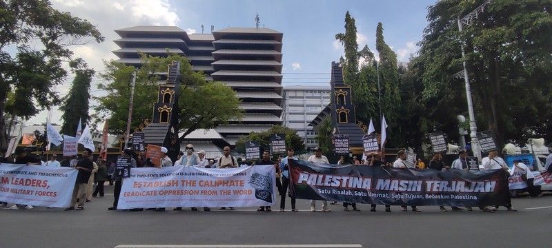 Ähnliche Kundgebungen fanden in Semarang und Purwokerto statt, an denen Tausende Menschen aus der Umgebung teilnahmen. Die Demonstranten hielten Transparente hoch, die die Zwei-Staaten-Lösung ablehnten und sie als Scheinlösung bezeichneten, die die Besatzung verewige. Religionsgelehrte und Gemeindevorsteher verurteilten das Schweigen der muslimischen Herrscher und bezeichneten es als Verrat am Islam und die Muslime im gesegneten Land (Palästina). Sie betonten, dass die Besatzung des gesegneten Landes (Palästina) ohne Einheit unter einer einzigen islamischen Führung – dem rechtgeleiteten Kalifat nach prophetischer Lehre – andauern werde.