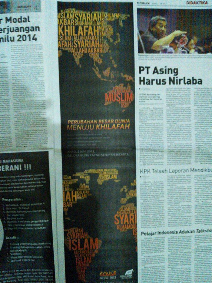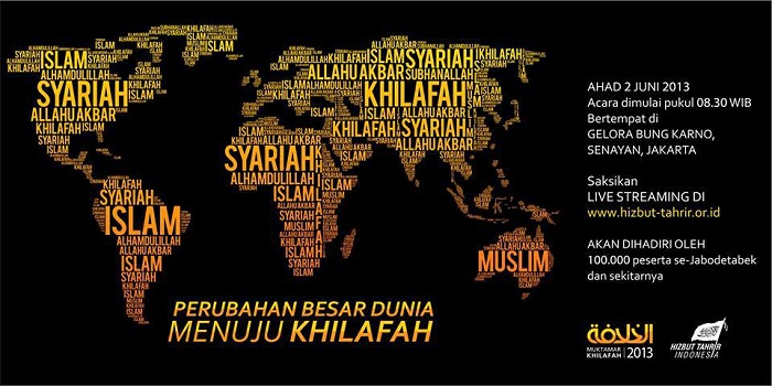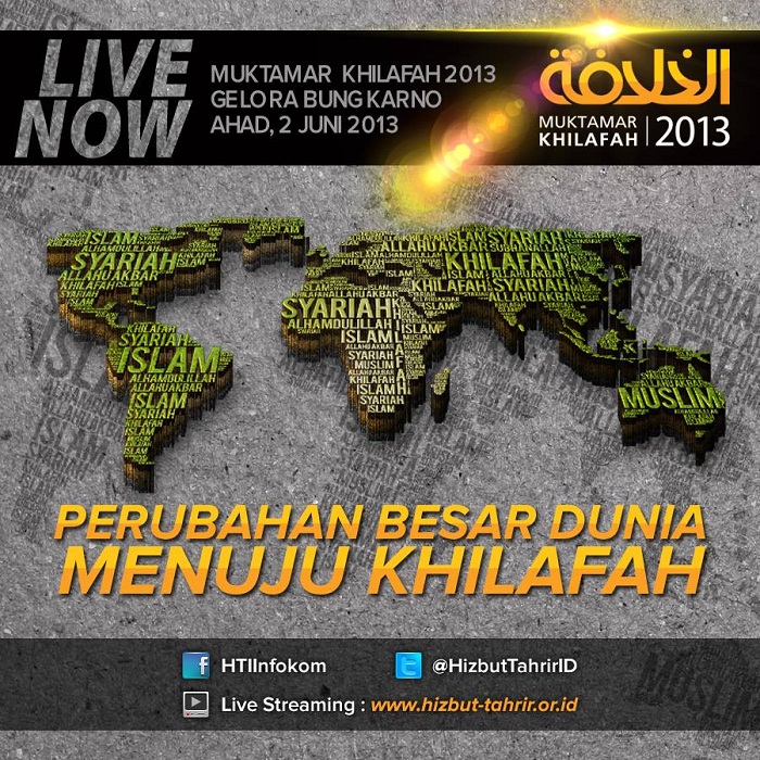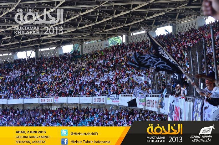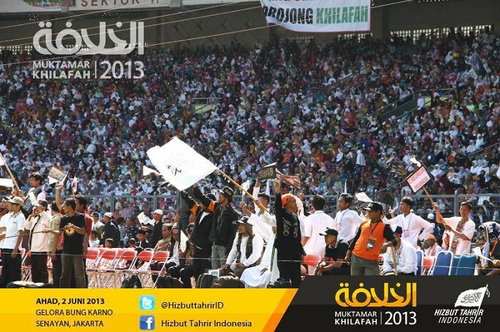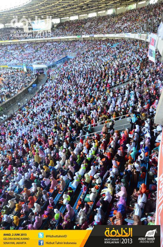 Hizb-ut Tahrir Endonezya'da 120 bin kişilik Hilafet Konferansı Gerçekleştirdi. Jakarta şehrinin 100 bin kapasiteli Gelora Bung Karno stadında toplanan 120 bin Müslüman "Hilafet'in Geleceğinin Küresel İşaretleri" başlığında gerçekleştirilen konferansta Hilafet talep ettiler.