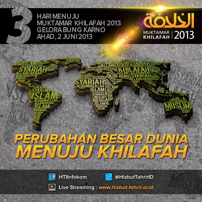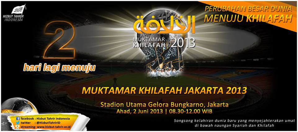 28 Recep Hilafet'in kaldırılışının Hicri yıldönümü sebebi ile her yıl çeşitli ülkelerde faaliyetler gerçekleştiren Hizb-ut Tahrir bu yıl Hilafet'in kaldırılmasının H.89 yıldönümü sebebi ile mayıs ayında Endonezya'da 31 farklı konferans gerçekleştirdi. Serinin son halkası 02 Haziran Pazar günü Jakarta'da ki 120 bin kişilik konferans oldu.