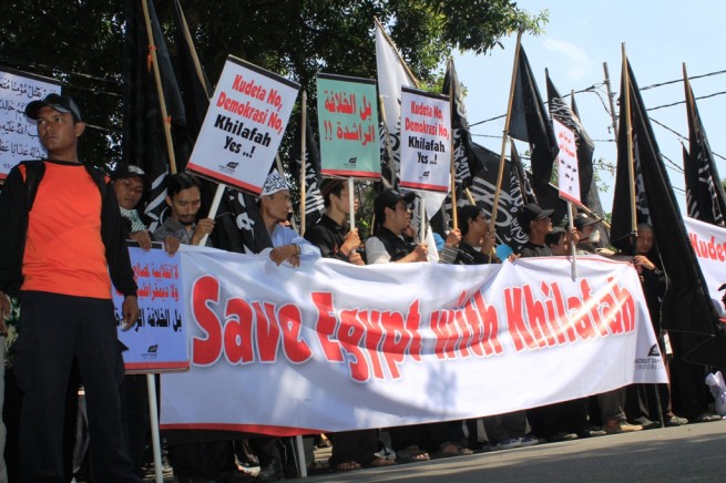 Hizb-ut Tahrir Endonezya, Endonezya'nın bir çok kentinde Mısır ve Suriye'de Müslümanlara yönelik işlenen katliamları protesto eden gösteriler düzenlemiştir. Bu gösterilerin en çok dikkat çekeni ise; Cakarta'daki Mısır büyükelçiliğinden başlayan ve mücrim Beşşar'ın elçiliğinde son bulan ve Mısır ve Şam'daki katliamları protesto eden gösteri olmuştur.