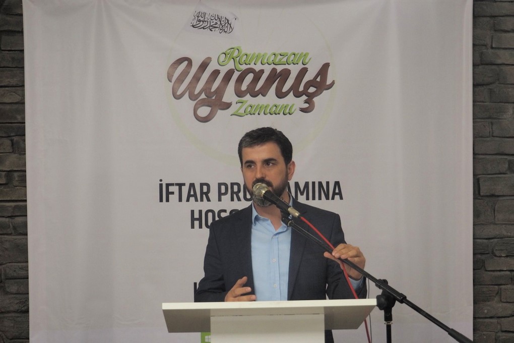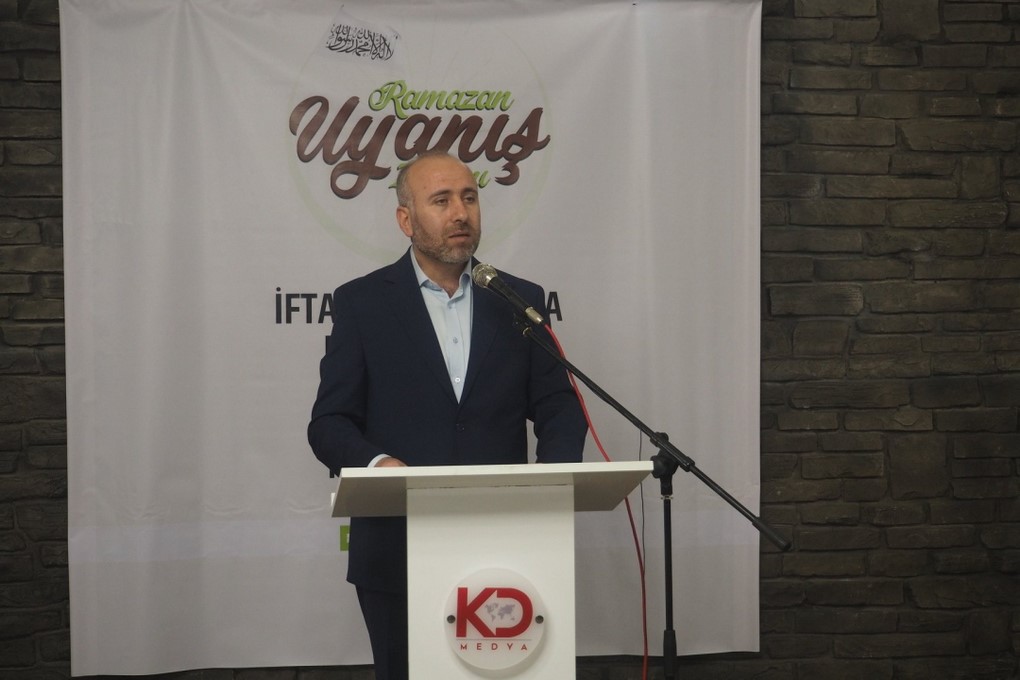 İftar programına iştiraklerinden dolayı davetlilere teşekkür eden Mahmut Kar, “Ramazan Uyanış Zamanı” kampanyası hakkında kısa bilgi verdi. Kar, her yıl olduğu gibi Müslümanların Ramazan ayını yine acı ve hüzün ile karşıladıklarını, İslâm beldelerindeki işgal, istila ve sömürünün Ramazan ayında daha da şiddetlendiğini söyledi. Müslümanların uyku halinde olduklarını, bu uykudan Müslümanları uyandıracak yegâne şeyin slogan ve hamaset ya da Batılı düşüncelerden olan laiklik, demokrasi, Milliyetçilik değil aksine kâmil manada hayatta var olacak İslâm’ın hayat sistemi olduğunu ifade eden Kar, “Batılıların devlet ve otoriteleri var ve güçlüler, onlar inandıkları ideolojilerini yayıyorlar ama Müslümanlar olarak bizim devlet ve otoritemiz yok, bu sebeple bu Ramazan Hilâfetsiz ve vahdetsiz geçen son Ramazan olsun!” dedi.