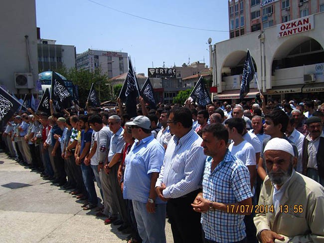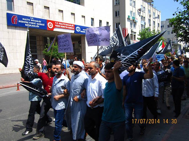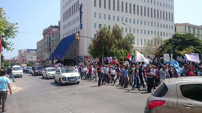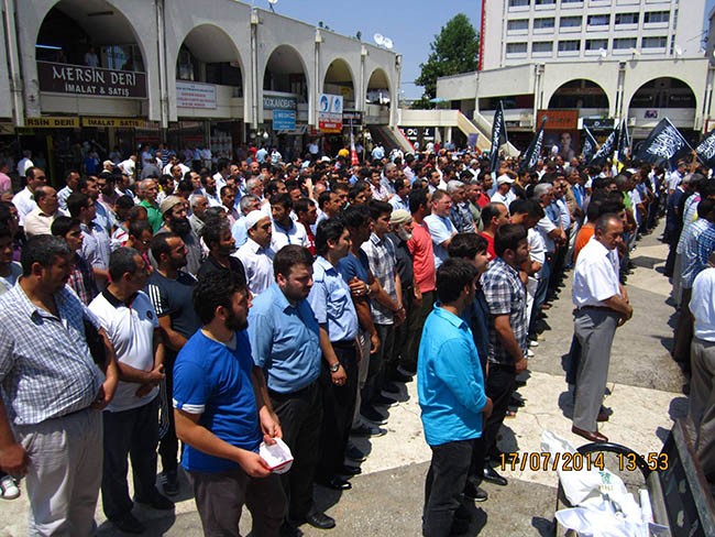 Mersin Ulu Camii'nde Cuma namazı çıkışı toplanan kalabalık, Mahmut Çimen hocamızın kıldırdığı gıyabi cenaze namazı ile başladı. Ardından AGD adına Sezai İncesu basın açıklaması metnini okudu. İncesu okuduğu basın açıklamasında Ortadoğu daki İslam beldelerinin yöneticilerini eleştirerek katliamlara sessiz kalmalarını kınadı. Basın açıklamasının ardından yapılan etkili dua ile kalabalık yürüyüşe geçti.