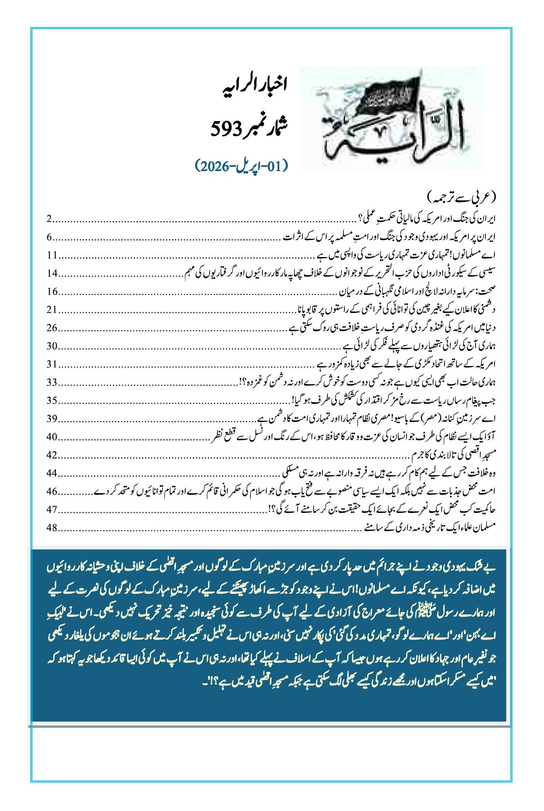 رایہ اخبا ر شمارہ نمبر 593