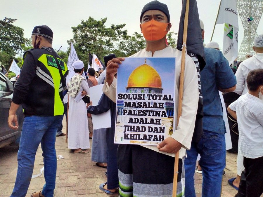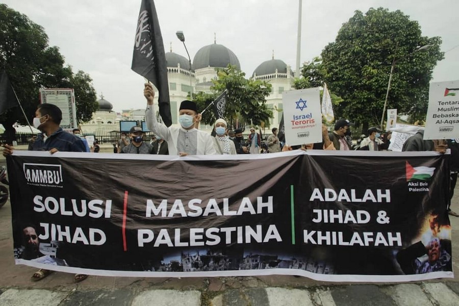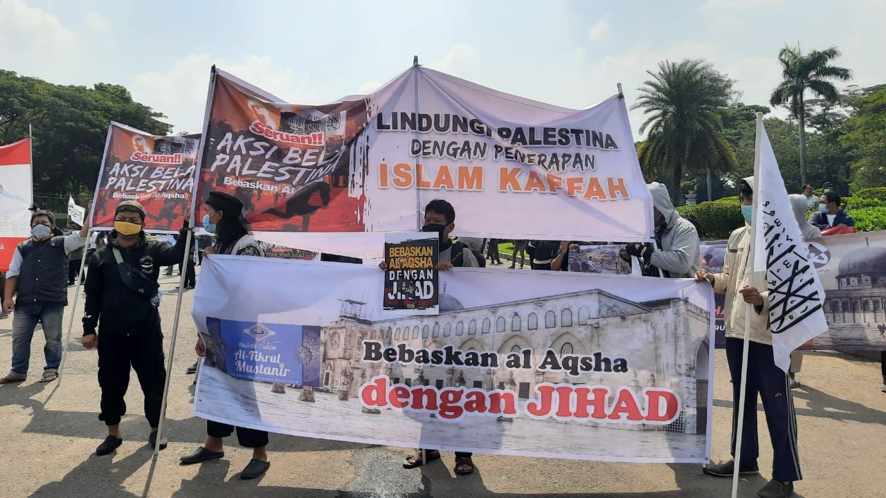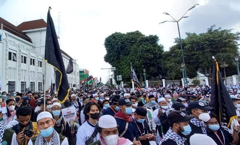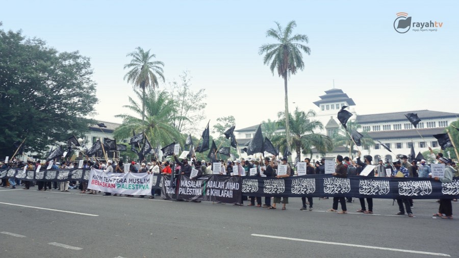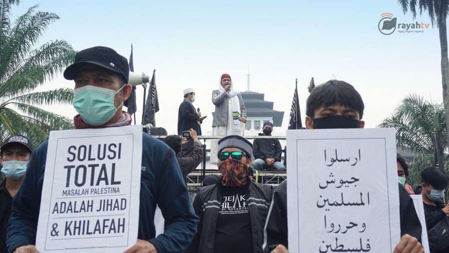 حالیہ صورتحال کے پیش نظر جس میں مبارک سرزمین فلسطین پر مسلسل یہودی وجود کی جارحیت واضح ہے اور مسجد اقصیٰ پر حملہ اور پچھلے 15 سالوں سے غزہ پٹی پر بمباری اور محاصرہ، ظلم کی ایک نئی تاریخ رقم کر رہے ہیں. حزب التحریر انڈونیشیا نے مئی 2021 کے پہلے تین ہفتوں میں فلسطین کے حق میں ملک بھر میں مختلف شہروں میں مظاہرے منعقد کیے. ان مظاہروں میں علما، سیاسی شخصیات اور کارکنان نے فلسطین کے مسئلہ کے حقیقی حل پر روشنی ڈالی جو کہ جہاد اور خلافت ہے. مبارک سرزمین فلسطین پر یہودی وجود قابض ہے اور یہ ناجائز قبضہ صرف اس صورت میں ختم کیا جا سکتا ہے کہ جب مسلم افواج حرکت میں آئیں. اور مسلم افواج فلسطین کی مکمل آزادی کے لئے صرف تب حرکت میں آ سکیں گی جب خلافت قائم ہو گی. مقررین نے مسلم ممالک کی افواج کو پر زور پکار دی کہ وہ یہودی وجود کو ختم کرنے اور مکمل فلسطین کو آزاد کرانے کے لئے فوراً حرکت میں آئیں.