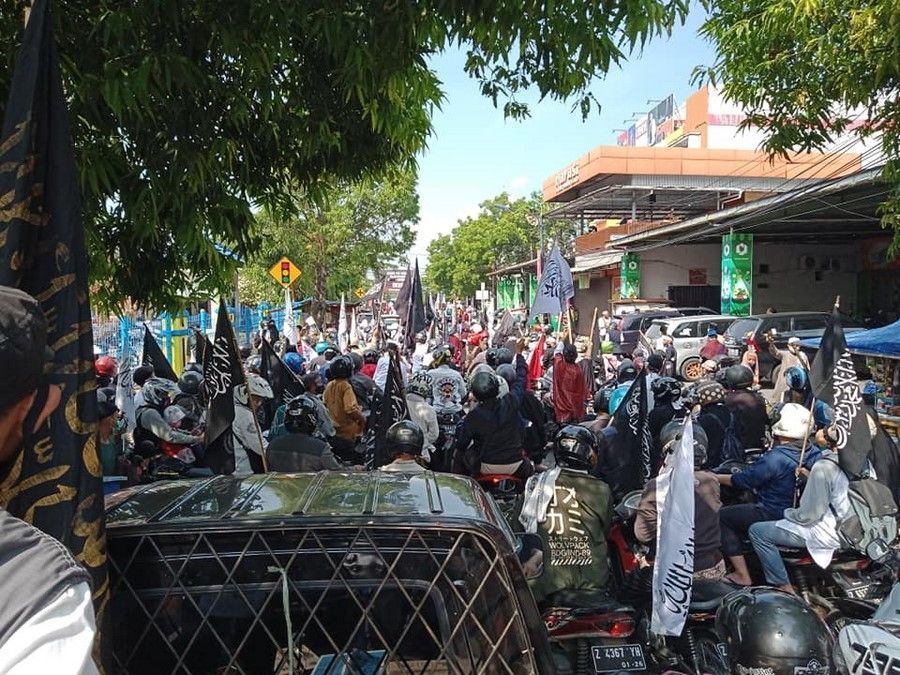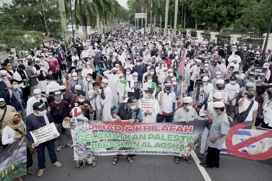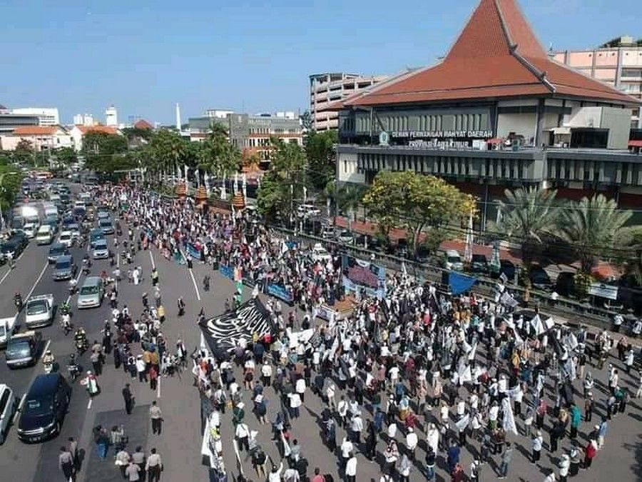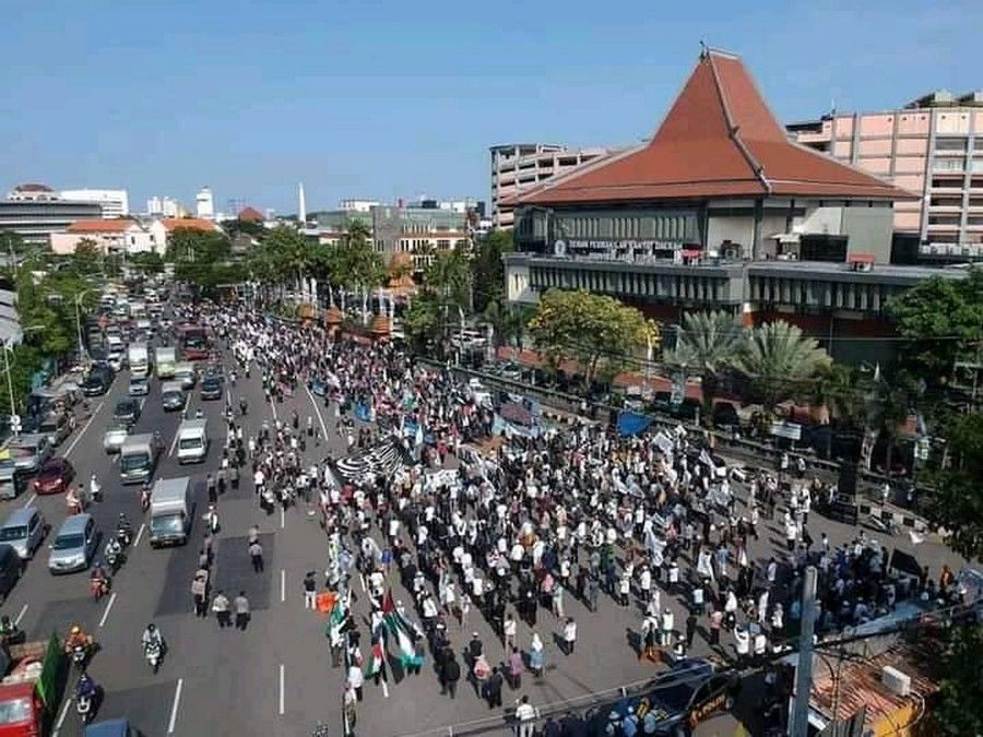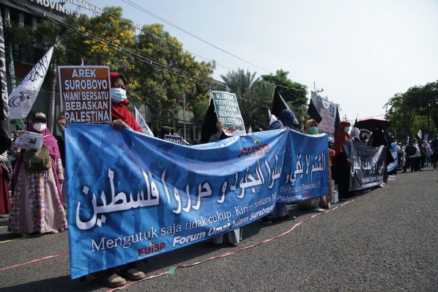 حالیہ صورتحال کے پیش نظر جس میں مبارک سرزمین فلسطین پر مسلسل یہودی وجود کی جارحیت واضح ہے اور مسجد اقصیٰ پر حملہ اور پچھلے 15 سالوں سے غزہ پٹی پر بمباری اور محاصرہ، ظلم کی ایک نئی تاریخ رقم کر رہے ہیں. حزب التحریر انڈونیشیا نے مئی 2021 کے پہلے تین ہفتوں میں فلسطین کے حق میں ملک بھر میں مختلف شہروں میں مظاہرے منعقد کیے. ان مظاہروں میں علما، سیاسی شخصیات اور کارکنان نے فلسطین کے مسئلہ کے حقیقی حل پر روشنی ڈالی جو کہ جہاد اور خلافت ہے. مبارک سرزمین فلسطین پر یہودی وجود قابض ہے اور یہ ناجائز قبضہ صرف اس صورت میں ختم کیا جا سکتا ہے کہ جب مسلم افواج حرکت میں آئیں. اور مسلم افواج فلسطین کی مکمل آزادی کے لئے صرف تب حرکت میں آ سکیں گی جب خلافت قائم ہو گی. مقررین نے مسلم ممالک کی افواج کو پر زور پکار دی کہ وہ یہودی وجود کو ختم کرنے اور مکمل فلسطین کو آزاد کرانے کے لئے فوراً حرکت میں آئیں.